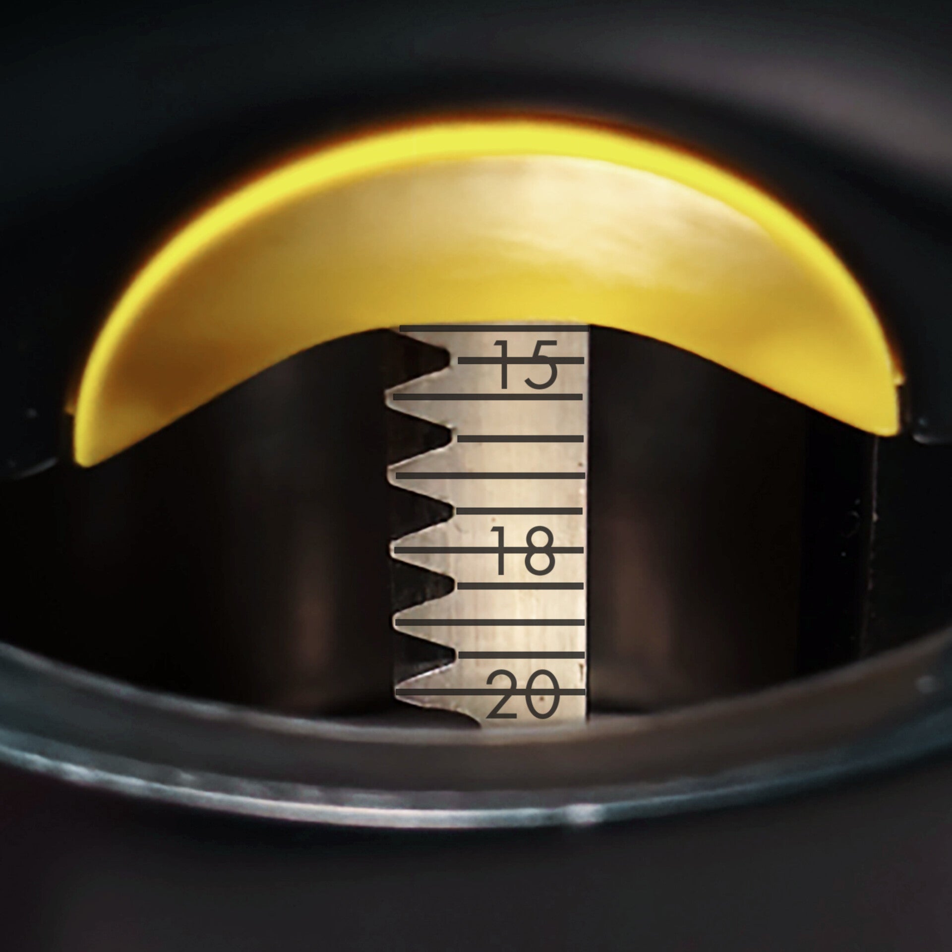 Intelligente Ratio Skala ermöglicht aufs Gramm genaue Einstellung deines Espressoshots.