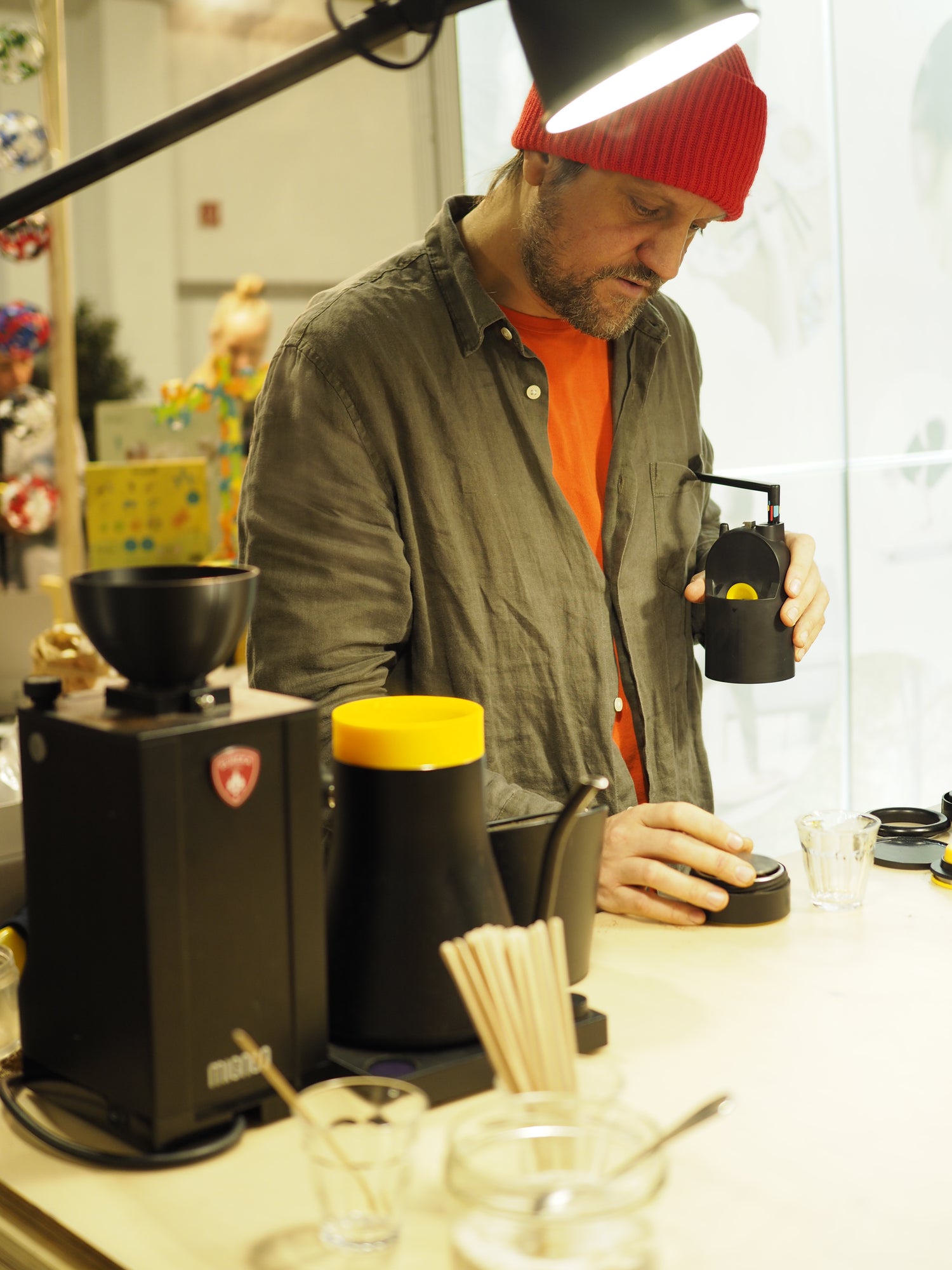 Smallest and lightest manual espresso machine compatible with e61 58mm filter baskets.